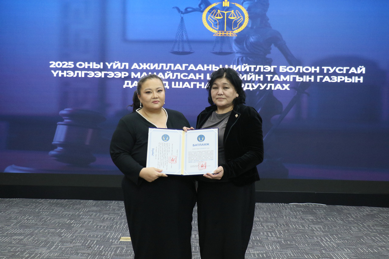 Шүүхийн ерөнхий зөвлөлийн дарга П.Золзаяа анхан болон давж заалдах шатны шүүхийн Тамгын газрын дарга нартай 2026 оны гүйцэтгэлийн төлөвлөгөө байгуулж, 2025 онд үйл ажиллагааны нийтлэг үнэлгээгээр эхний байруудад шалгарсан шүүхийн Тамгын газарт шагнал гардуулав.